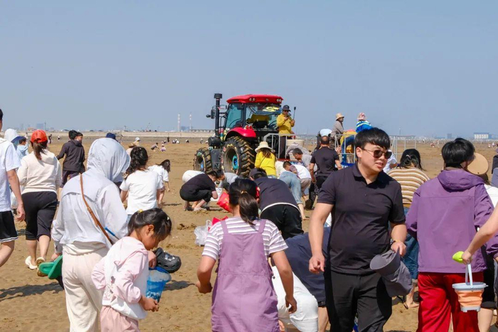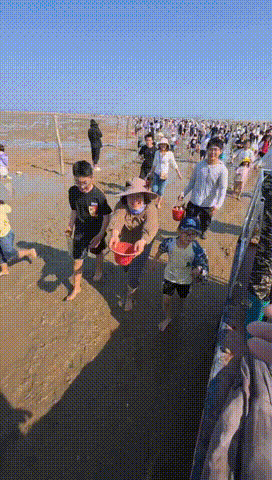 赶海的游客们都能收获满满,蛤蜊、蛏子、小螃蟹等应有尽有,笑声、惊呼声与海浪声,交织成欢乐的海洋。