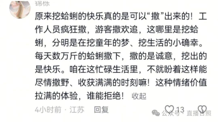 该景区工作人员回应:这是他们特地在五一假期推出的“龙王献宝”活动,每天撒3000斤左右蛤蜊。下午两点半到四点半左右会撒,撒的蛤蜊是雇佣员工从滩涂里挖出来的。