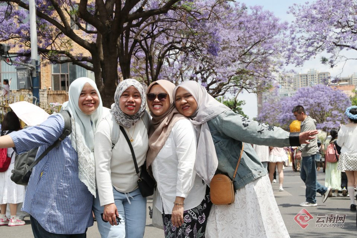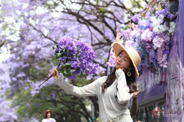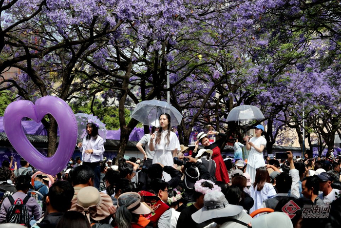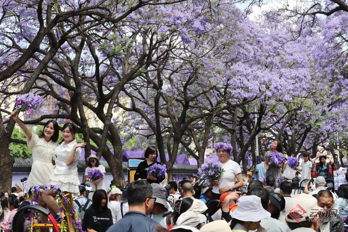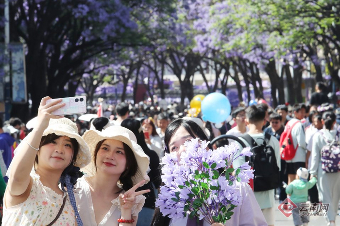 “五一”假期,昆明教场中路的蓝花楹迎来盛花期,淡紫色的花朵在阳光下摇曳生姿,如梦如幻的蓝花楹街景令人陶醉,绵延1.4公里的紫色花海成为全国游客的“诗与远方”,整条街区变成景区,人潮与花海共绘春城诗意,让“有一种叫云南的生活”独具魅力。