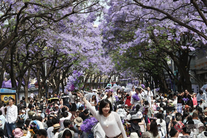 昆明教场中路蓝花楹大道:紫色花海与人潮共舞‌