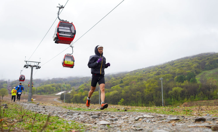 运动爱好者在吉林市松花湖度假区参加越野跑(2025年5月1日摄)。松花湖度假区利用山地优势,将冰雪运动拓展到全季节山地运动。 新华社记者 颜麟蕴 摄