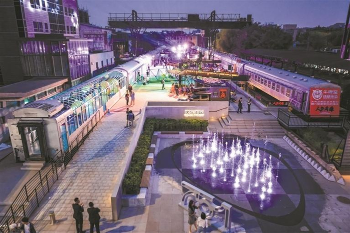 徜徉在工业风与时尚感融合的火车街区里,年轻人的目光与包罗万象的集市不期而遇,街头音乐、新奇美食、原创设计……人潮里笑声流动。斜阳近晚,园区内浪漫的烛光爵士音乐会同样迷人,市民游客还可以欣赏一场露天电影。