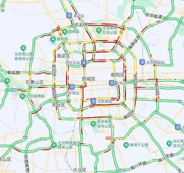 王府井、西单、合生汇、三里屯、五棵松等热点商圈出行热度高,周边道路车流量大,停车场出入口易出现短时排队情况。晚间,国家体育场将举办演唱会,活动入场和散场期间,周边道路短时车流集中。