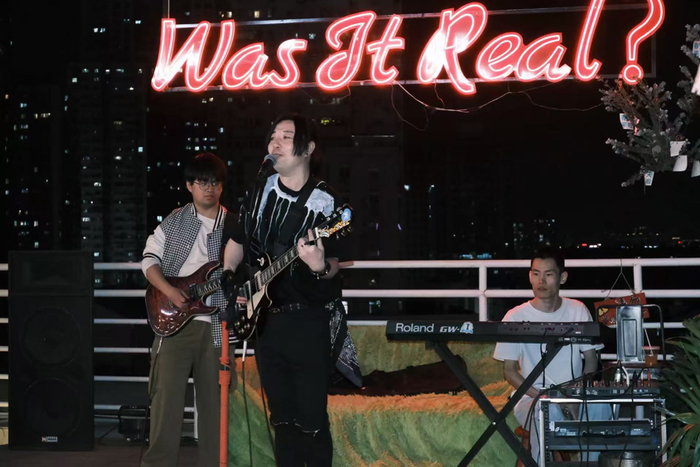 电梯门打开,乐队歌手的曼妙歌声传来,循着声音走进天台,绿植森林、霓虹灯光、落日余晖扑面而来,“没有天花板”的独特场景让他们眼前一亮。