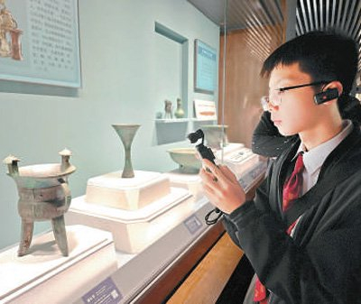 香港中学生在山西省博物馆参观。