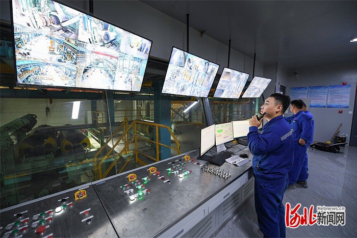 5月8日,中普(邯郸)电磁材料科技有限公司新能源用电工钢(一期)项目生产线控制室,技术员对各机组设备进行指挥调度。 董源摄
