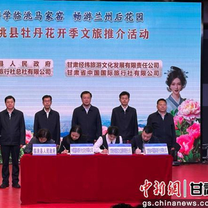 中新网甘肃新闻5月12日电 (张婧)12日,“研学临洮马家窑·畅游兰州后花园”临洮县牡丹花开季文旅推介活动在甘肃临洮举行。