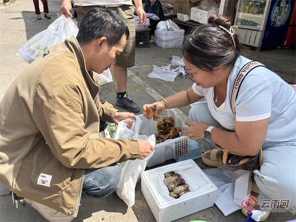 市场商户介绍,近期市场上售卖的野生菌大部分进入餐饮店或者发往省外,本地市民尝鲜的购买量相对较少。“专门来看看菌子的情况,目前感觉价格偏高。”市民戴先生告诉记者,自己和家人都喜欢吃见手青、鸡枞,每年吃菌季家里的餐桌上都少不了野生菌这道美味。“不过现在还少,再观望下,过段时间菌子多了再入手。”