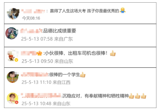 不少网友纷纷对姜昭鹏和救人的司机点赞,“虽然错过了考试,但是他的人生考试满分”。