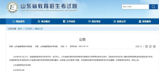 5月14日,山东省教育招生考试院发布公告称,经报请上级主管部门同意,将按照规定程序启用春季高考语文科目副题,安排姜某参加考试。