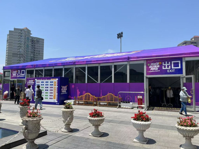 5月13日,上海环球港出口商品展销会从商场B2层,挪至商场正门南广场。