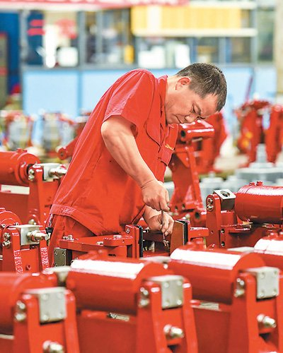 近年来,江西省丰城市大力发展民营经济,壮大县域经济。截至目前,该市民营经济主体达2万余户,已形成鞋服箱包、电子装备制造、现代家居等产业集群,解决了一大批农民工就业问题。图为5月14日,在丰城市一家制动器产品公司,工人赶制订单产品。