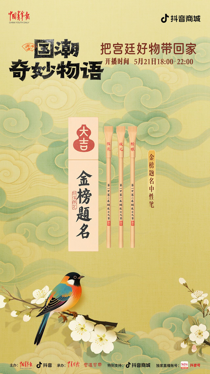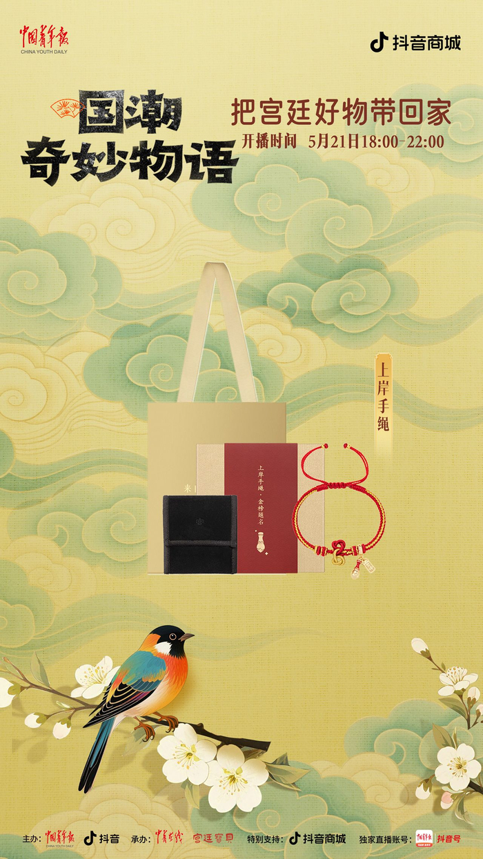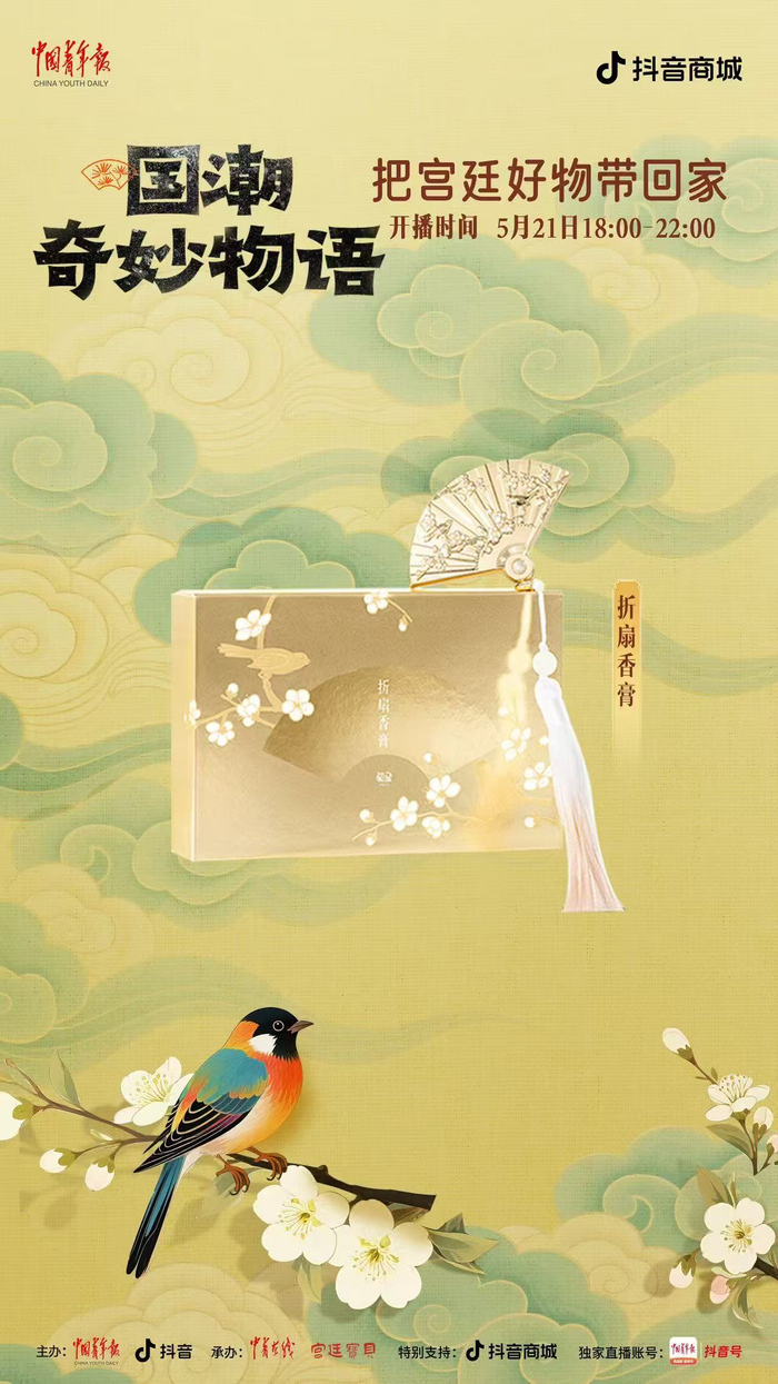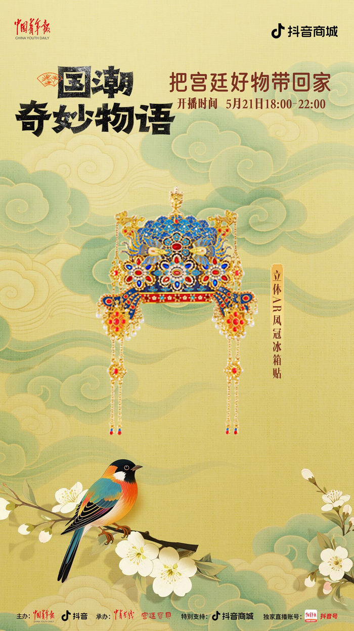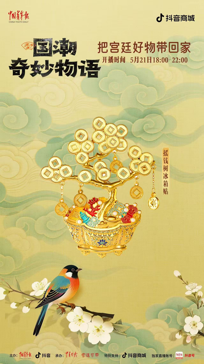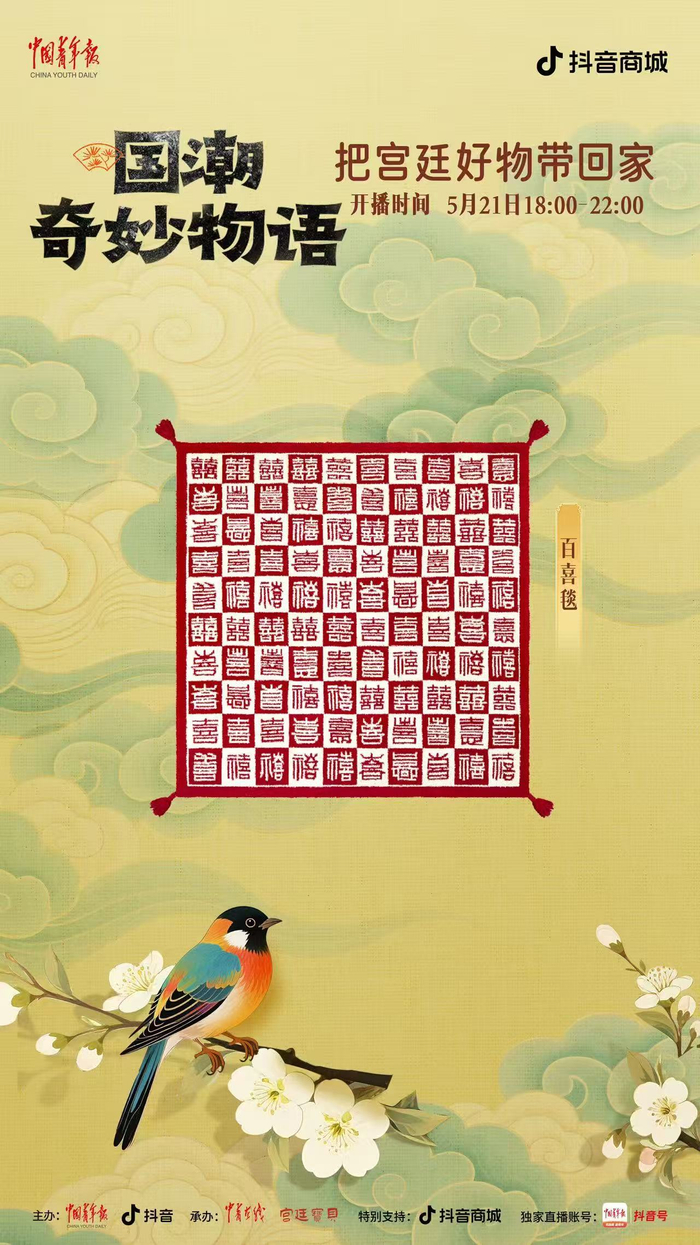 中国青年报客户端讯(中青在线记者 温维娜)5月21日18时至22时,由中国青年报社、抖音主办,中青在线、宫廷宝贝承办的“国潮奇妙物语:把宫廷好物带回家”主题直播,将在中青报客户端抖音号独家开播。本场直播精心挑选了宫灯冰箱贴、随身镜、百喜毯等 20 件文创好物,为观众带来直播间专属超低价格。此外,还有文博馆员和新锐策展人亲临直播间,讲解文创产品背后的历史典故,以及现代创意与传统文化碰撞出的文化新解。