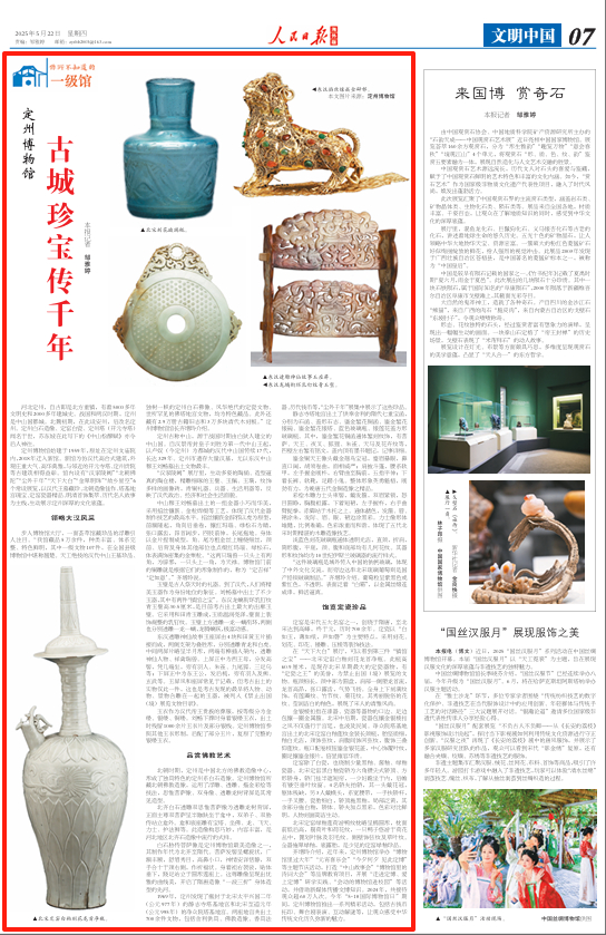步入博物馆大厅,一面荟萃馆藏珍品的浮雕引人注目。“我馆藏品5万余件,种类丰富、体系完整、特色鲜明,其中一级文物107件,在全国县级博物馆中堪称翘楚。天工绝技的汉代中山王墓珍品、独树一帜的定州白石佛像、风华绝代的定瓷文物、世所罕见的佛塔地宫文物,均为特色藏品。此外还藏有2.9万册古籍旧志和3万多块清代木刻板。”定州博物馆馆长齐增玲介绍。