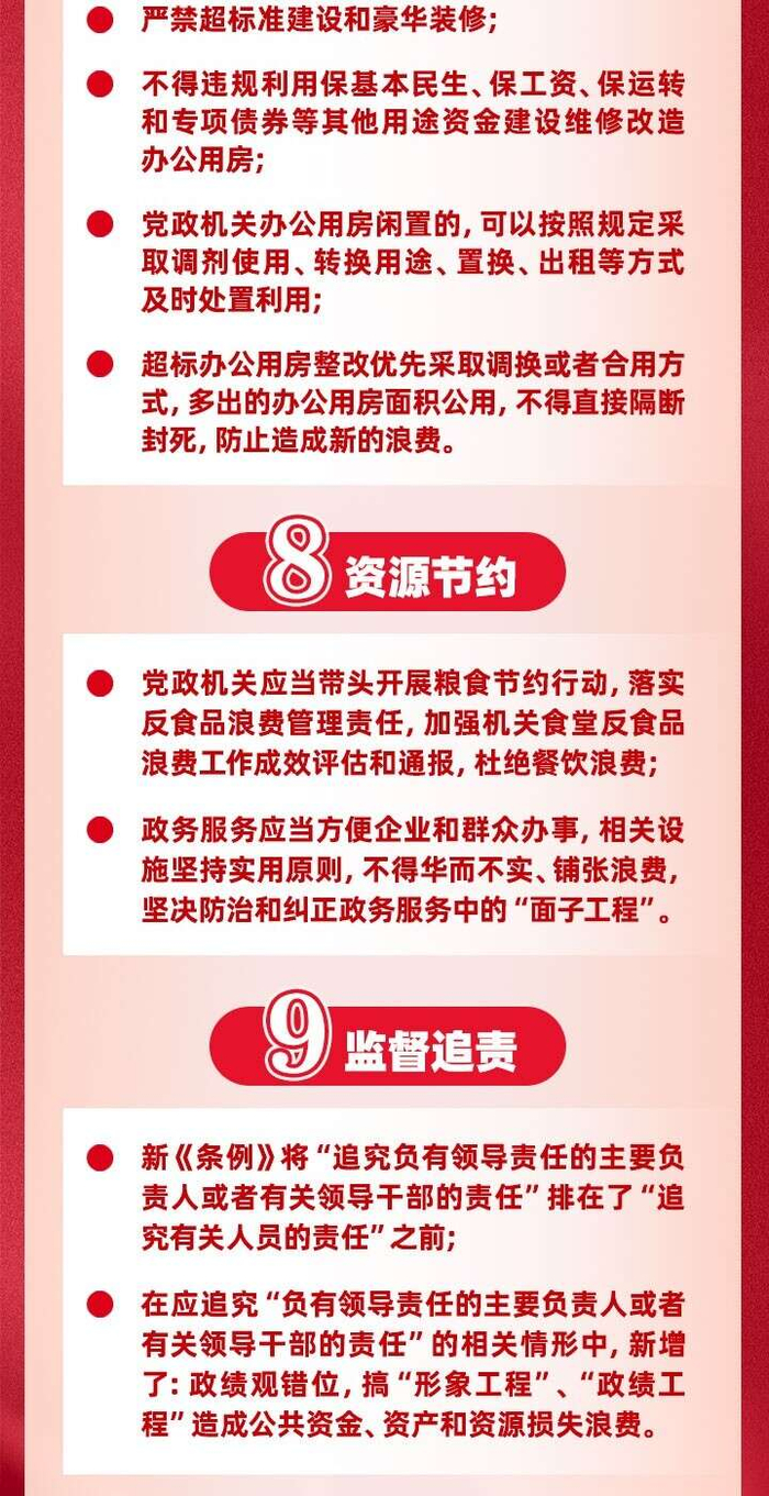 图知道|新修订的《党政机关厉行节约反对浪费条例》,有这些新变化 中国青年报 《中国青年报》官方账号 2025.05.2308:30 关注 近日,中共中央、国务院印发了修订后的《党政机关厉行节约反对浪费条例》。时隔近12年,修订后的《条例》有哪些新变化,一图带你了解。 责任编辑:刘世昕,程璨