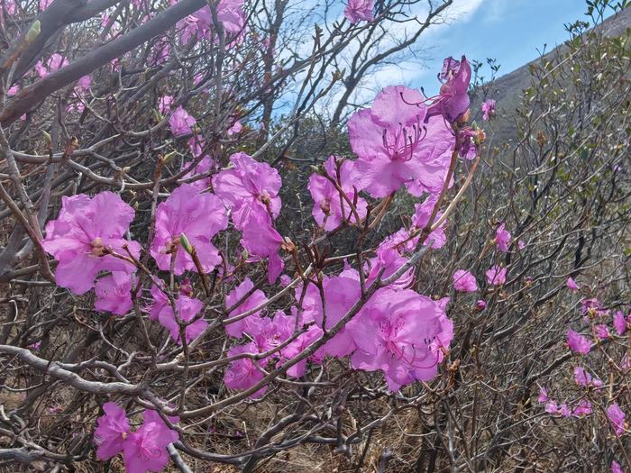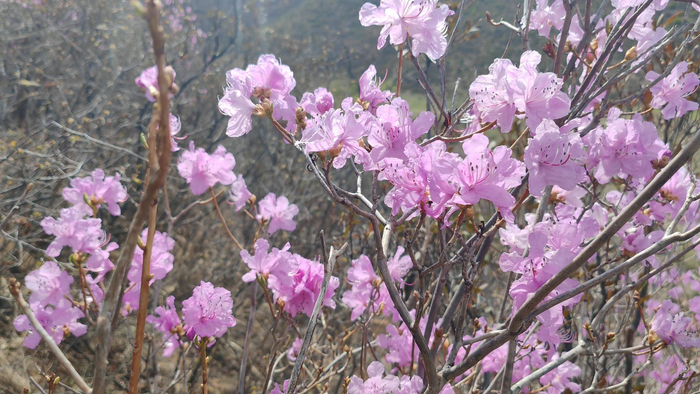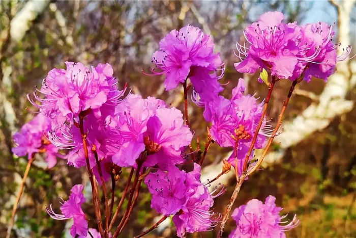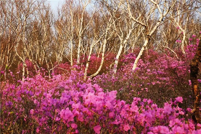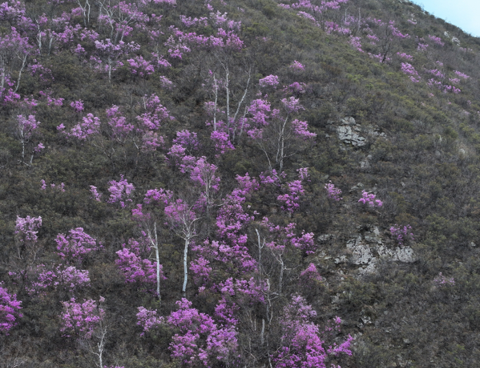 海日罕林场万亩野生杜鹃花竞相绽放。