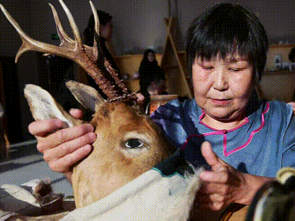 在鄂伦春自治旗文化馆,一场小型非物质文化遗产代表性项目展示活动正在进行。“鄂伦春狍角帽制作技艺”的自治区级非物质文化遗产代表性传承人吴玲芝,用兽皮制作的鄂伦春族传统长袍,是名副其实的“高奢定制服装”。
