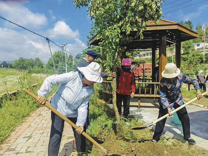 党员群众一起开展环境绿化工作