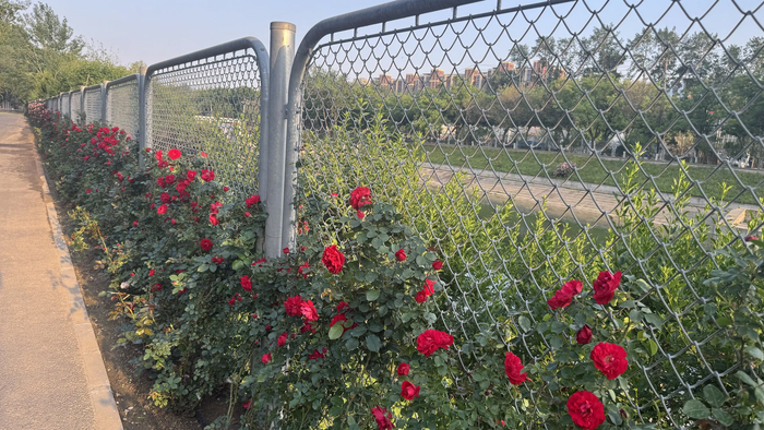据了解,京密引水渠全长近110公里,其中大部分渠道设有金属隔离护网,用来保护水源安全。北京市京密引水管理处在京密引水渠昌平段和海淀段,根据全线护网光照条件的不同,分类选择合适的植物,阳光充足段种植月季与蔷薇,半阴段选用凌霄与扶芳藤,林荫浓密段则采用中华地锦与常绿植物。如今,原本冰冷的围栏,变成了一道道会开花的绿墙。