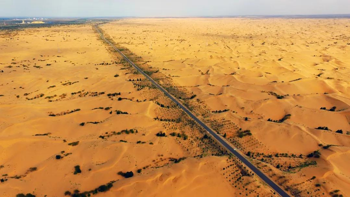 2003年以来,赤峰市翁牛特旗成功探索出“以路治沙”模式,在茫茫沙海中修建了13条400多公里的穿沙公路,活跃的人流、物流通过公路进入沙地深处,蓬勃绿色则由公路两侧向外延伸。