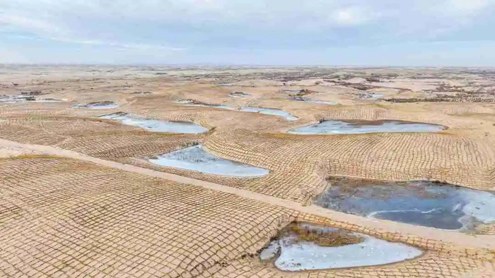 2017年,京新高速公路临(河)白(疙瘩)段全线通车,这是世界上穿越沙漠最长的高速公路,也是内蒙古交通人践行“穿沙精神”的典型案例。在施工过程中,建设者在风积沙路段设置了1570万平方米“井田”,如今,“井田”沙生植物已经成活,为枯燥沉寂的沙漠带来蓬勃的活力与生机。