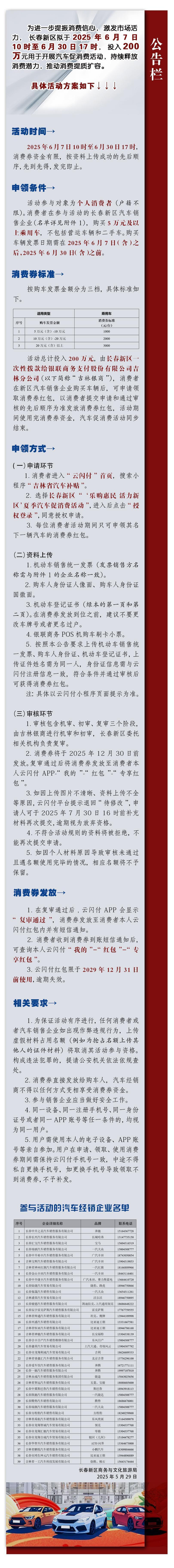 >>公告栏丨200万汽车消费券!注意发放时间。