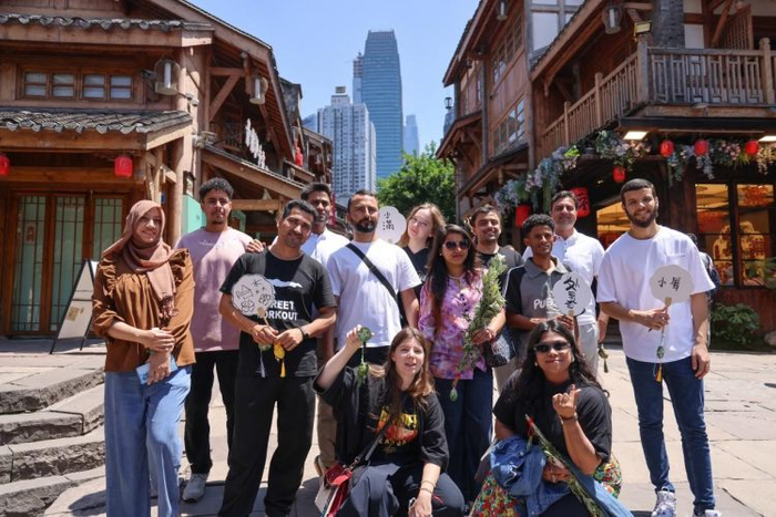 而一旁的老茶馆里,盖碗茶的清香悠然飘散。沱茶、花茶、绿茶在盖碗中舒展,留学生们学着地道的重庆人“刮碗”品茗,在茶香氤氲中体会那份“一壶清茶,半日闲适”的巴渝慢生活真味。