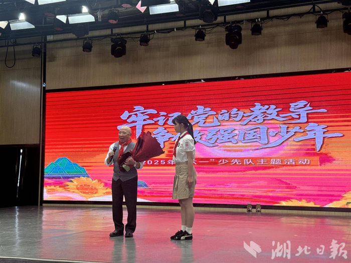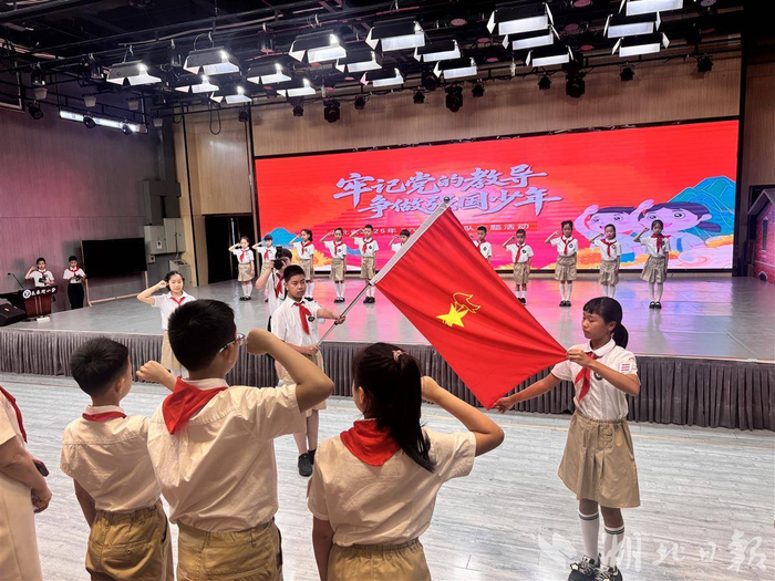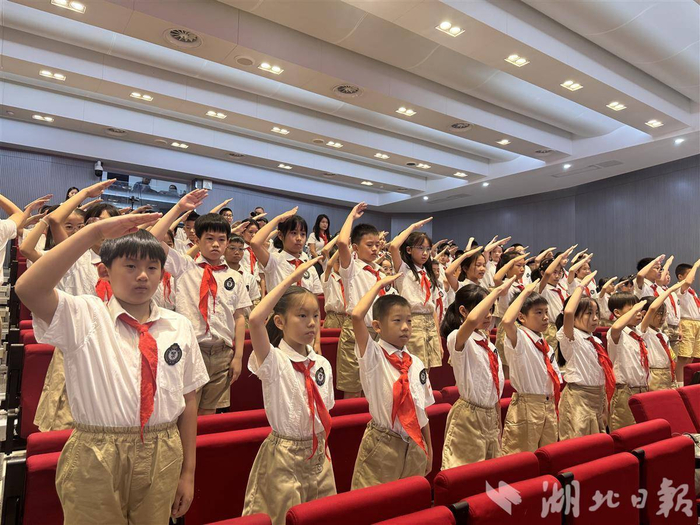 5月30日,共青团湖北省委、湖北省少工委联合主办的“牢记党的教导争做强国少年”2025年湖北省少先队“六一”主题队日活动在长春街小学举行。现场,一批新入队的少先队员光荣地戴上红领巾,全体少先队员齐唱《中国少年先锋队队歌》。