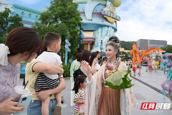 端午遇上六一,湘江欢乐海洋公园开启“粽”夏夜之梦游园活动,国风奶奶与游客互动,还有陆地龙舟赛、亲子团扇画等活动,深受亲子家庭喜爱。