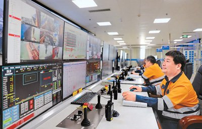 河北港口集团秦皇岛港股份有限公司聚焦智慧港口建设,通过构建智慧运营中心及生产调度、安全监管、环保监控“三大平台”,将人工智能、大数据等技术深度融入港口生产运营全链条。图为该公司第九港务分公司集控中心工作人员远程操作机械设备进行作业。曹建雄摄(人民视觉)