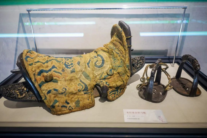 2024年原创展览“跃马万里——马文化特展”展品:龙纹鎏金铁马鞍。