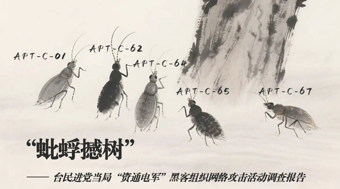 前不久,大陆方面曝光了台“资通电军”长期攻击政府、高校、军工企业等单位的罪行,台军所从事的网络间谍活动已显露出“数字恐怖主义”特征。由国家计算机病毒应急处理中心和360数字安全集团联合发布的《台民进党当局“资通电军”黑客组织网络攻击活动调查报告》,首次公开披露台湾五大黑客组织:APT-C-01(毒云藤)、APT-C-62(三色堇)、APT-C-64(匿名者64)、APT-C-65(金叶萝)和APT-C-67(乌苏拉)。