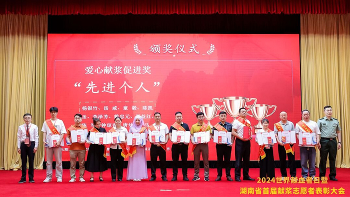 2024年6月13日,“献血献浆 融合发展”2024世界献血者日暨湖南省首届献浆志愿者表彰大会在长沙召开。
