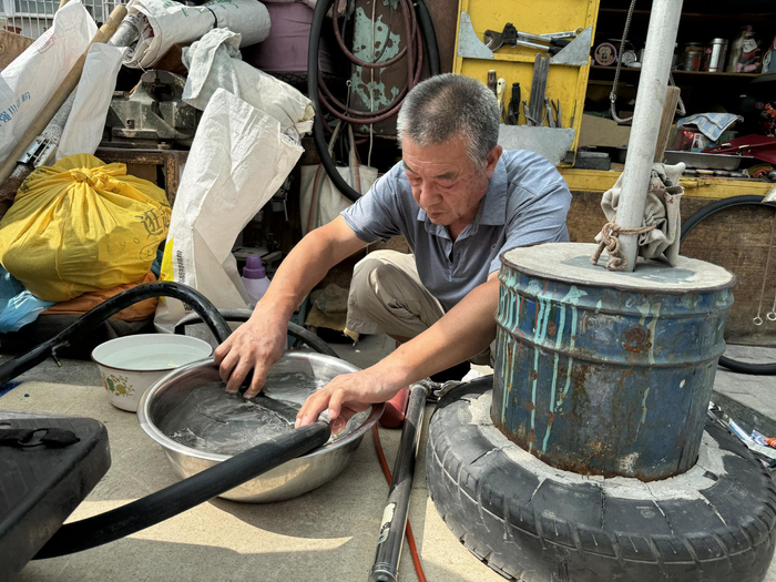 “上次车胎扎了,去专修店,补个胎要收我100多元,后来在徐师傅这里20多元就搞定了,而且徐师傅那种亲切感是专修店里感受不到的。”一位曾在老徐摊位上修过车的居民说。
