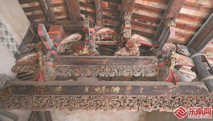 “曾氏家庙”为典型的闽南风格建筑,走进宗祠,门窗、房梁上精美的石雕、木雕令人叹为观止。