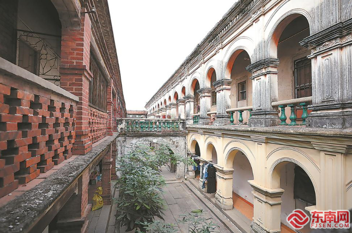 “每进大楼都有回廊和天桥相连接。”李文勇介绍,下雨天来往各个房间都不会淋到雨。楼房外面的方形廊柱、柱与柱之间的半圆拱门,以及从东南亚购买运回的欧式彩色瓷砖、花瓶状的瓷制栏杆,都表现出鲜明的南洋风格。