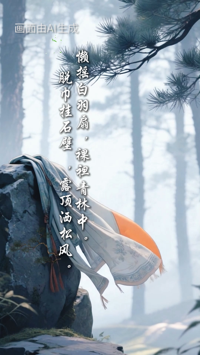 “懒摇白羽扇,裸袒青林中。脱巾挂石壁,露顶洒松风。”——《夏日山中》唐·李白
