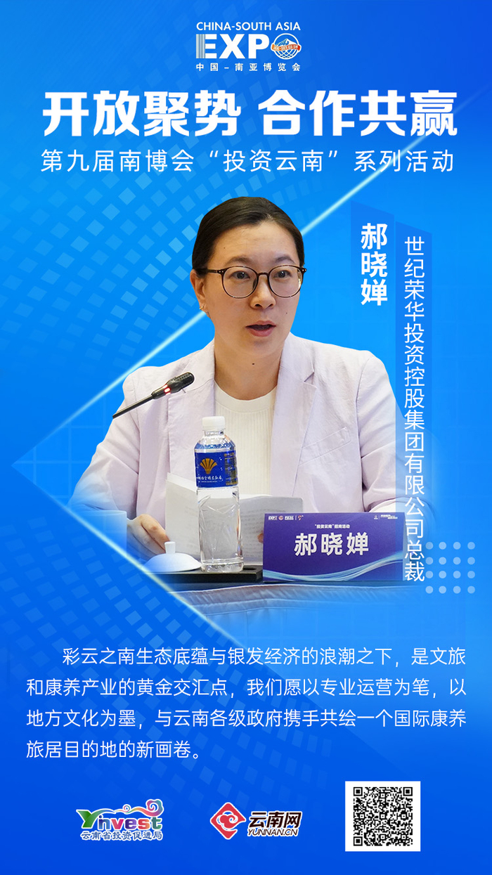 “彩云之南生态底蕴与银发经济的浪潮之下,是文旅和康养产业的黄金交汇点,我们愿以专业运营为笔,以地方文化为墨,与云南各级政府携手共绘一个国际康养旅居目的地的新画卷。”世纪荣华投资控股集团有限公司总裁郝晓婵说。
