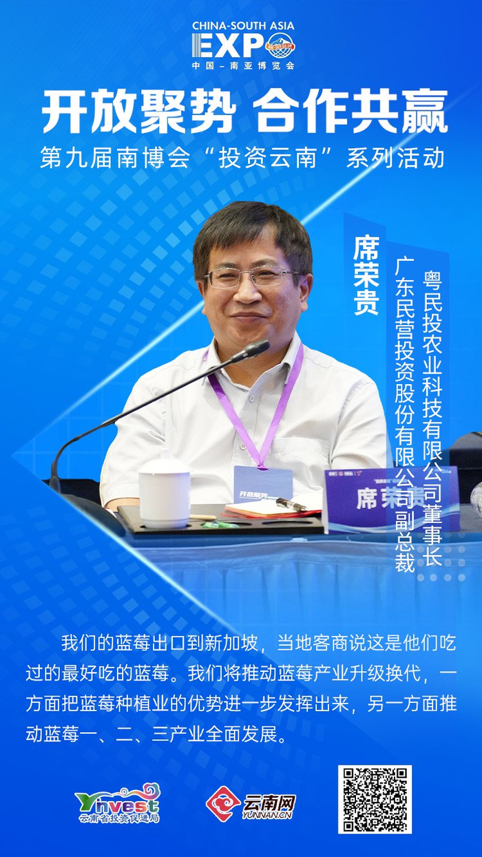 “云南蓝莓出口到新加坡,当地的客商说这是他们吃过的最好吃的蓝莓。”席荣贵骄傲地说,接下来,我们将推动蓝莓产业升级换代,把蓝莓种植业的优势进一步发挥出来,引入欧洲技术开发蓝莓高附加值产品,推动蓝莓一、二、三产业全面发展。