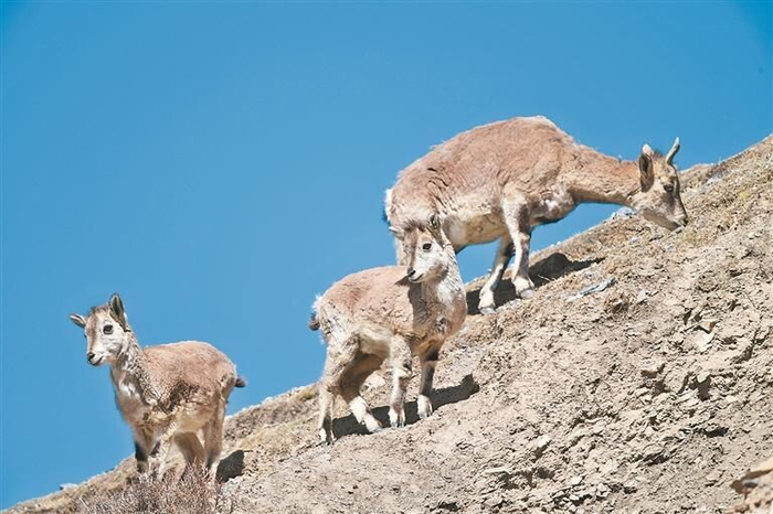 今天的青海,人与野生动物的距离正悄然拉近:雪豹误入羊圈被救助,“雪山隐士”频频亮相,野牦牛混入家牛群“求亲”,藏原羚、藏野驴与牧民的牛羊共享草场……这些看似令人啼笑皆非的偶遇,恰恰是高原生态向好的印证。