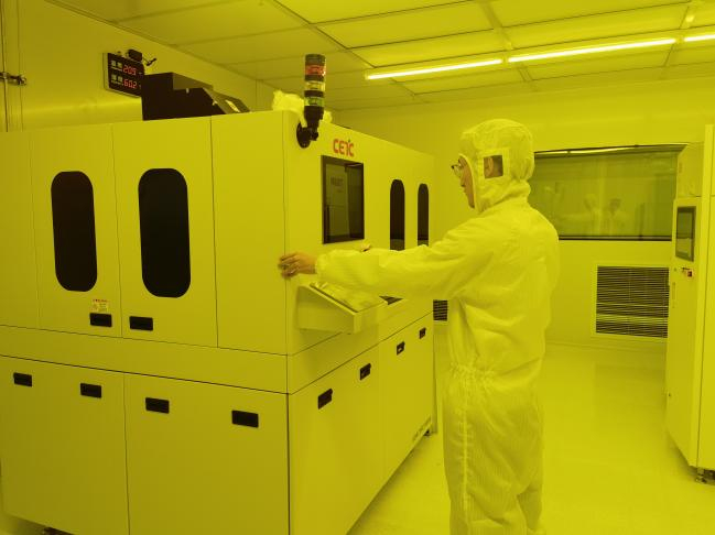 工作人员正在光刻间操作设备