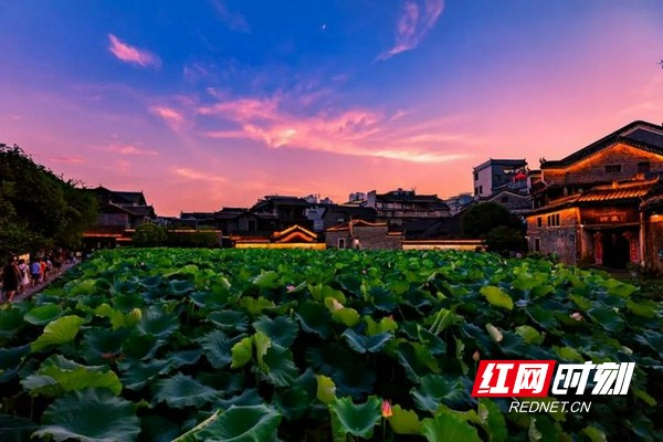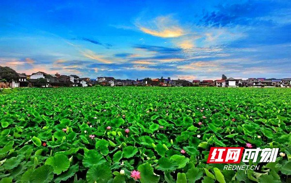 炎炎夏日中,大塘小塘荷花争相绽放,娇艳的荷花与古朴的民居交相辉映,洋溢着江南水乡“小桥、流水、人家”的恬静。