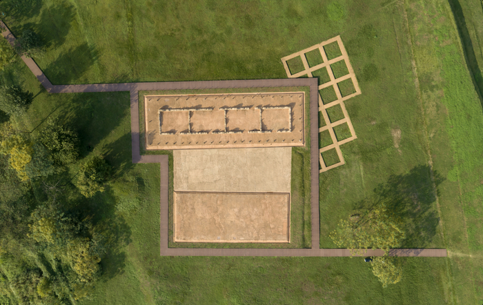 宫殿基址的呈现尤为困难,考古发掘之后,保护它最好的方式是回填。回填后,如何向游客展现宫殿面貌?博物院选择模拟复原,初次工程采用“三合土夯筑+杉木立柱”的方案,然而武汉多雨的环境和黏性的土壤,让方案完工仅3个月便被大雨冲垮。考古专家、材料专家、非遗传承人和文物保护工程设计、施工单位人员联合攻关,研发出GRC新配方泥垛墙,贴近原貌又能经受环境考验的一号、二号宫殿基址,最终得以呈现在人们眼前。