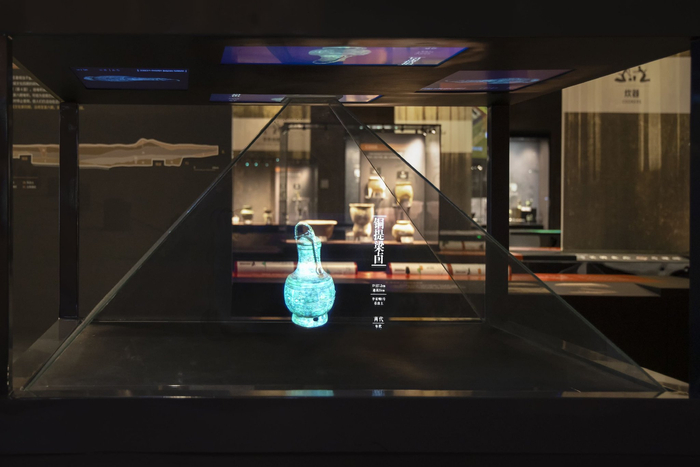 全息投影展示盘龙城遗址出土的青铜器。