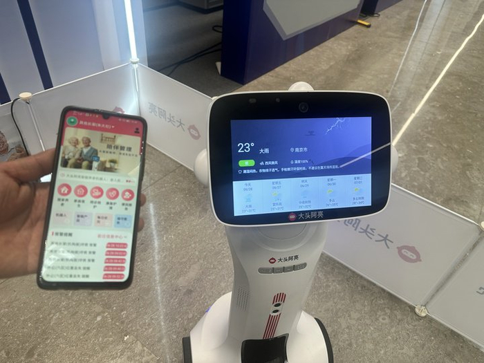 “你好阿亮,请问今天南京的天气怎么样?”现场,一款名为“大头阿亮”的养老机器人也吸引了很多参展人员驻足了解。作为国内首款专为老年人研发的智能养老机器人,它通过安全守护、健康管理、远程照护和智慧陪伴等,实现了全天候守护老人,让科技温暖助力“老有所依”。