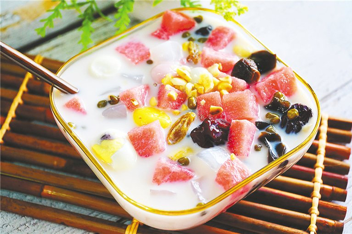 海南夏季天气炎热,凉饮广受大家欢迎,如果要问哪一种凉饮人气最高,恐怕非清补凉莫属。海南清补凉可选择的配料有葡萄干、薏米、龟苓膏、绿豆、西瓜粒、菠萝粒、玉米粒、通心粉、凉粉块、芋头等10多种,撒上一小勺花生碎。清补凉多样的配料食材,配上甜甜的椰汁或糖水,入口的清凉能让暑意瞬间消散。