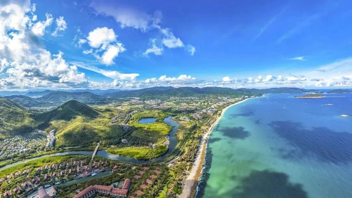 放眼亚龙湾,蔚蓝辽阔的天空、明媚温暖的阳光、清新湿润的空气、连绵起伏的青山、千姿百态的嵫岩、原始幽静的红树林、清澈澄莹的海水、洁白细软的沙滩……好一幅浑然天成的自然画卷。