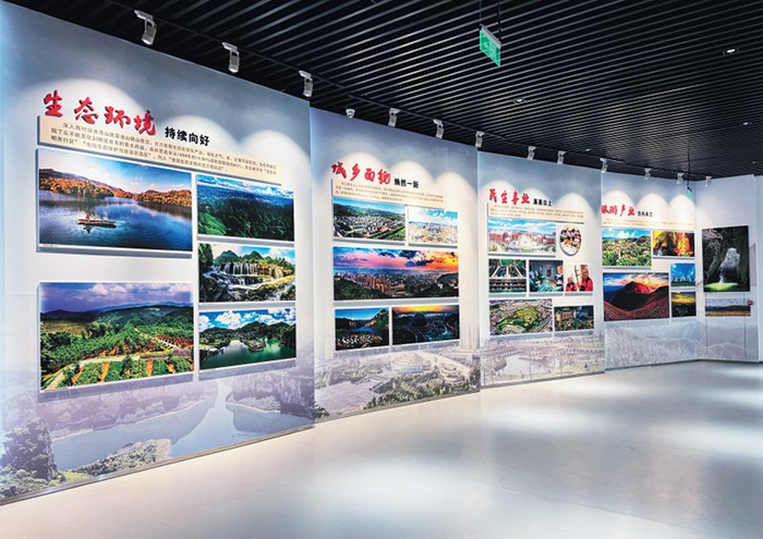 贵州毕节曾是西部贫困地区的典型。在毕节试验区的建设发展过程中,统一战线广泛参与、倾力相助,作出了重要贡献。毕节试验区同心展览馆展陈,生动展示中国共产党领导的多党合作和政治协商制度在毕节试验区的成功实践,展示统一战线参与支持毕节试验区建设所取得的成效。图为2025年6月27日拍摄的同心展览馆部分展陈。 毕节试验区同心展览馆供图