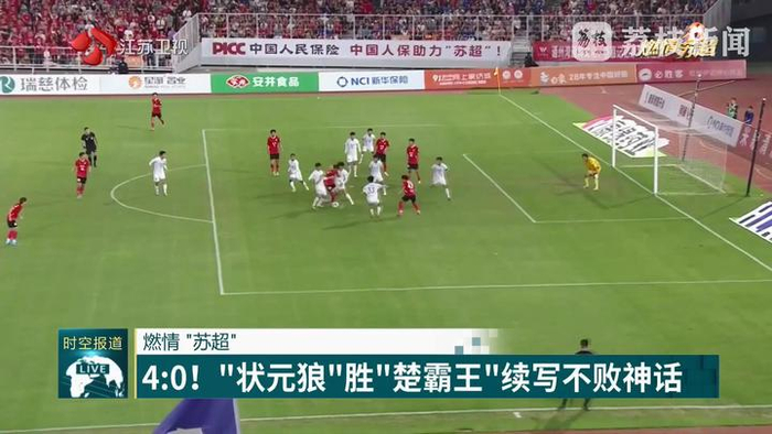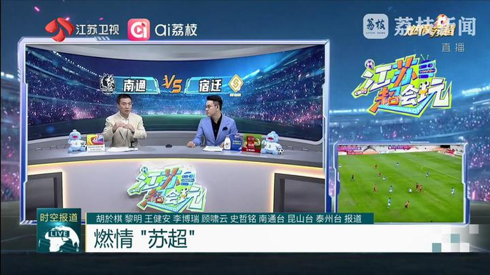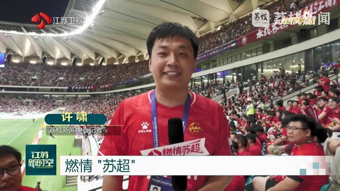 荔枝新闻中心记者许啸说:“现在我所在的地方是昆山奥体中心体育场,场上是正在进行苏州队主场迎战扬州队的比赛。”