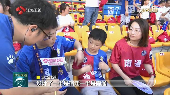 现场球迷说:“设计了一半是宿迁,一半是南通,特地这么去做是因为孩子自己要说做一个中立球迷。”